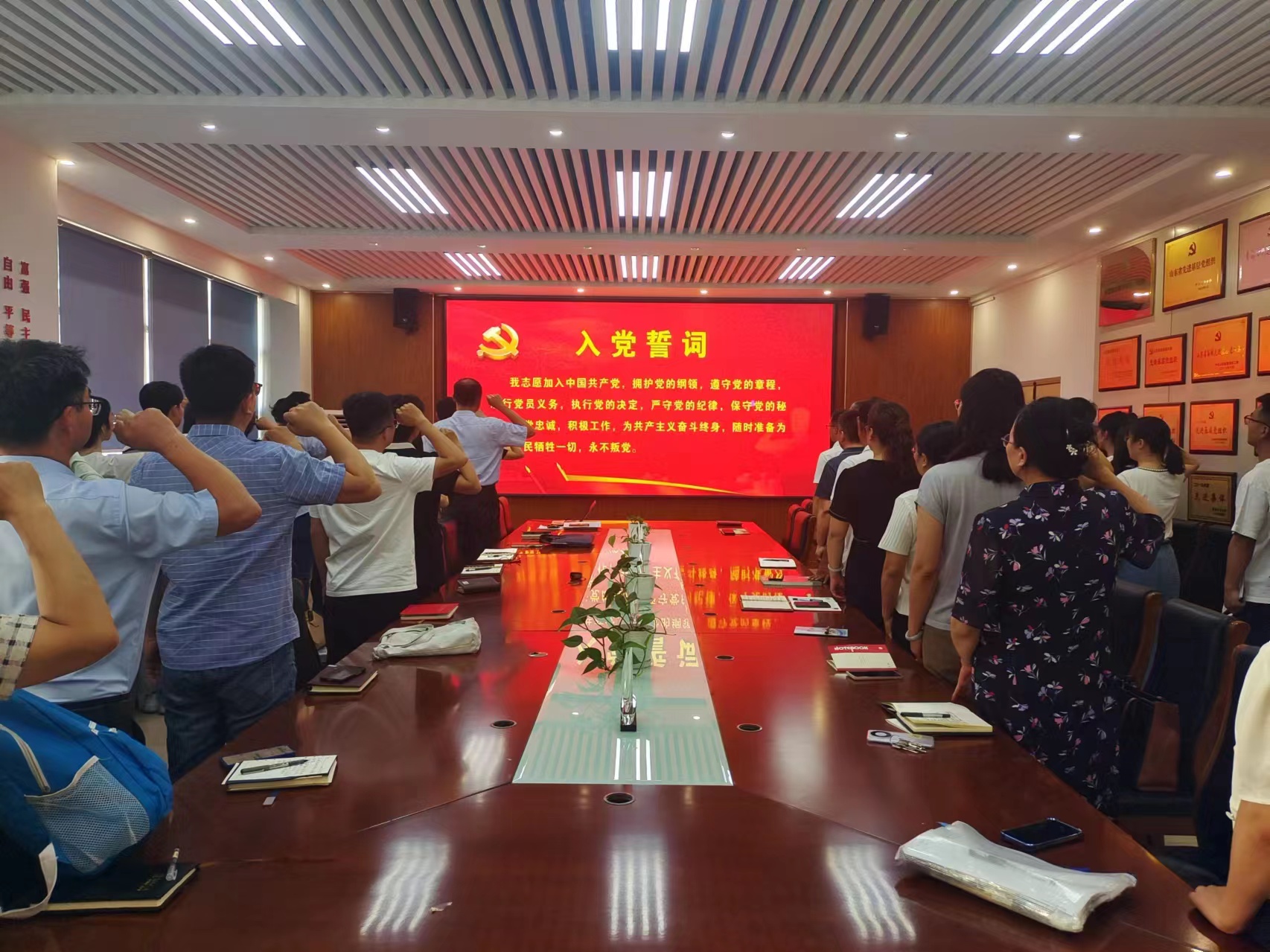 会上,全体党员在马伟萍的带领下,高举右拳,庄严宣誓,重温入党誓词。在铿锵有力的誓词声中,进一步强化了对党忠诚、全心全意为人民服务的初心使命。