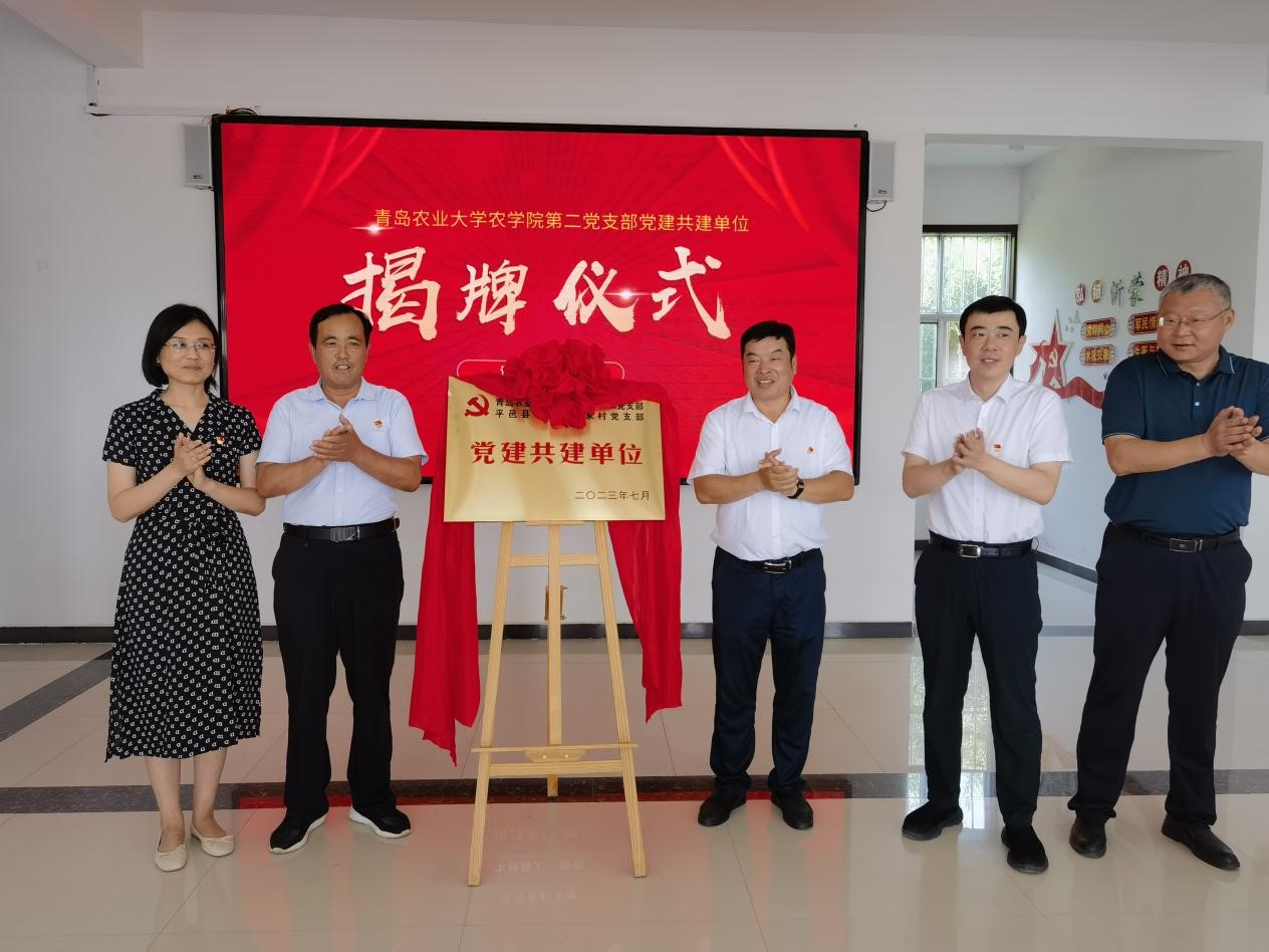 揭牌仪式前,党员们集体参观了时家村村史馆,深入了解了时家村在乡村振兴中取得的优异成绩。在揭牌仪式上,任大鹏介绍了卞桥镇农业发展、乡村振兴、党建引领基层治理等方面开展工作情况,并对我校开展的社会服务和党建服务给与充分的肯定,希望通过开展支部共建来创建校地党建新模式。马伟萍和张恩盈分别作共建致辞,希望通过搭建校地党建共建平台,有效互通党建经验和资源,共同开展党建共建研究,创新合作方式,优化合作内容,规范党支部建设;为校地开辟新的合作领域提供良好契机,充分发挥学院教师的专业优势资源,加强校地在科学研究、科技成果转化、技术应用等方面的进一步合作。时光超希望通过支部共建,以需求为导向,组织开展形式多样的联建共建活动,将党建活力转化为发展动力,促进农业产业发展。随后,与会领导共同为“beat365正版唯一官方网站第二党支部与平邑县卞桥镇时家村党支部党建共建单位”揭牌。