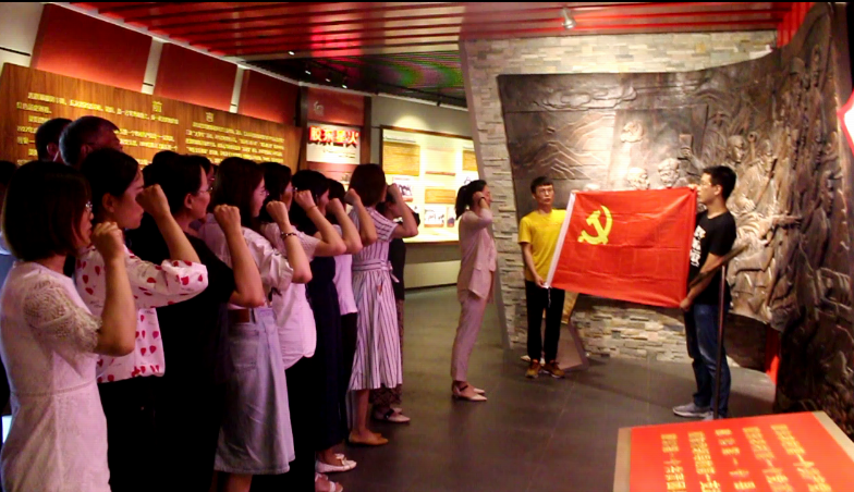 胶东第一县委革命历史文化展览馆综合运用文字、组画、图表、实物等翔实的史料,全景式、全程式再现了1925年至1949年的莱阳党史,以及1950年至1958年莱阳专区的各项社会主义事业的发展成就,纪念意义非凡。全体党员在解说员的带领下,依次参观了“胶东星火”、“五龙怒潮”、“旌旗破晓”、“丹崖丰碑”、“专区高歌”五个主题展区,在“看、听、行”中重温了胶东红色革命的火种从无到有、从星火到燎原的奋斗历程,缅怀了革命先烈。各位党员认真聆听讲解员的解说,仔细观看陈列的图片、实物,抚今追昔,慨然动容,深深折服于革命先辈们炙热的革命情怀和纯粹的爱国精神,深刻体会到党的伟大事业来之不易。参观结束,在刘宁的带领下,全体党员高举右手重温入党誓词,表达了“不忘初心、牢记使命”、“坚定不移听党话、跟党走”的政治信念,激扬的誓词久久回荡在展览馆内。