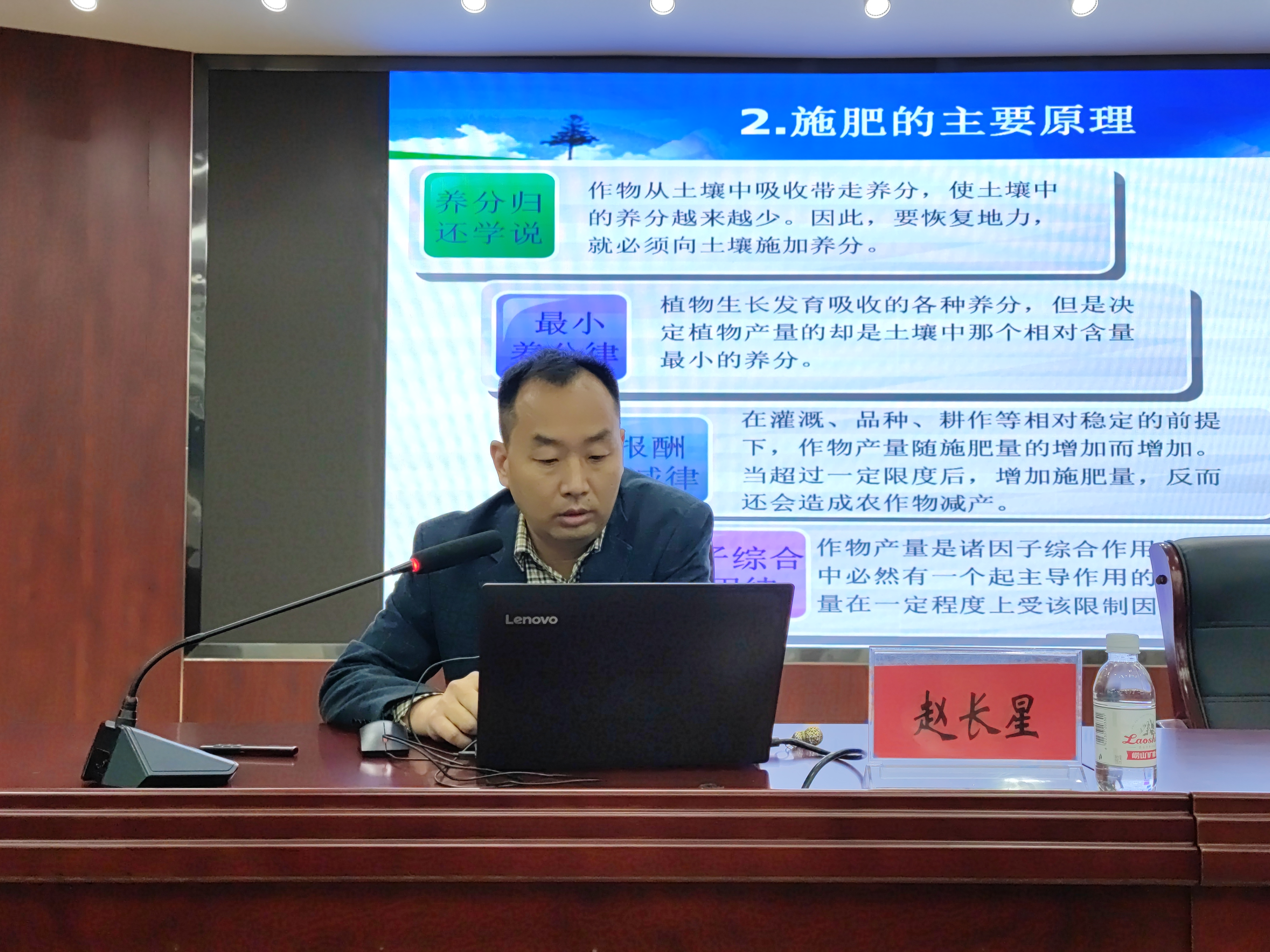 活动中,学院第一党支部书记、副院长赵长星,第二党支部书记、副院长张恩盈分别作题为“小麦优质高产施肥技术”和“现代农业发展现状与趋势”的科普知识讲座,有效提高了基层农技人员的农技水平,为大场镇农业增效、农民增收提供了有力的科技支撑。