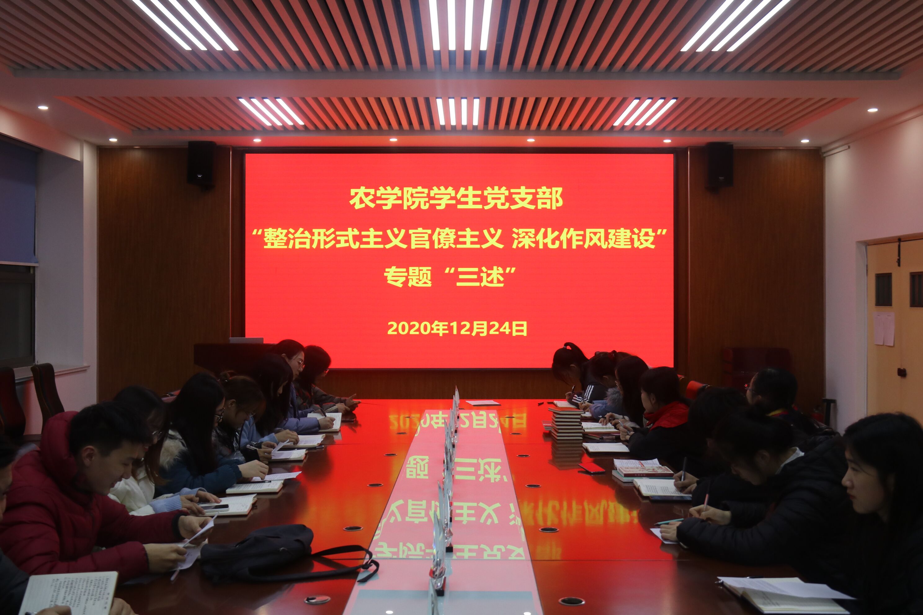 12月24日,beat365正版唯一官方网站学生党支部于生物楼开展“整治形式主义官僚主义,深化作风建设”专题“三述”活动,beat365正版唯一官方网站党总支副书记、第三党支部书记马伟萍,第三党支部副书记刘宁和全体学生党员参加。