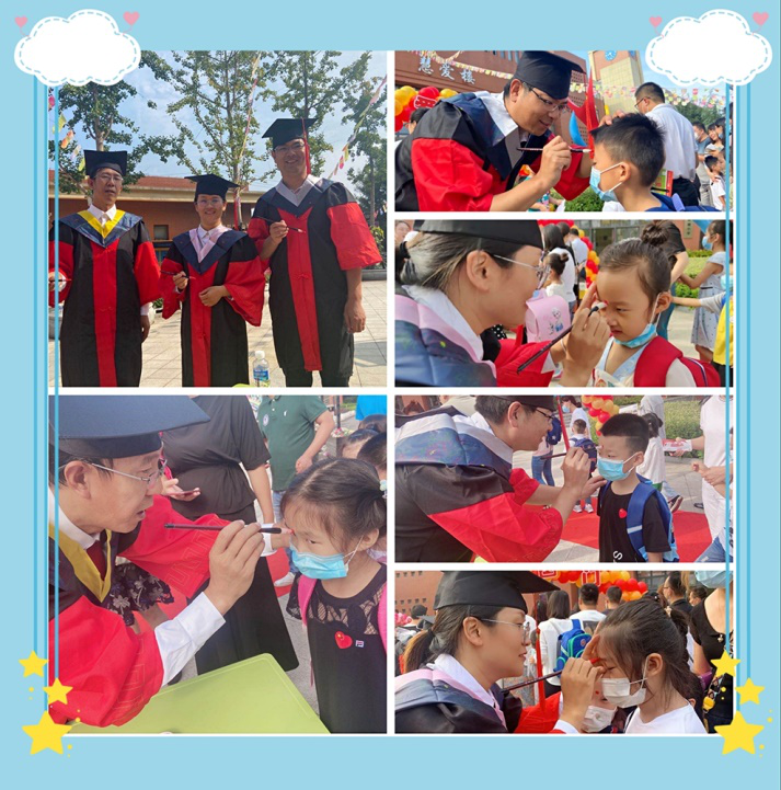 beat365正版唯一官方网站第二教工党支部的老师们走到孩子们面前,在他们的额头正中点上一颗红痣,因为“痣”与“智”谐音,朱砂点痣,取的就是“智”的意思,意为开启智慧,目明心亮,祝愿孩子们从此眼明心智,好读书,读好书,开启新的知识航程,遨游学海,起飞梦想。