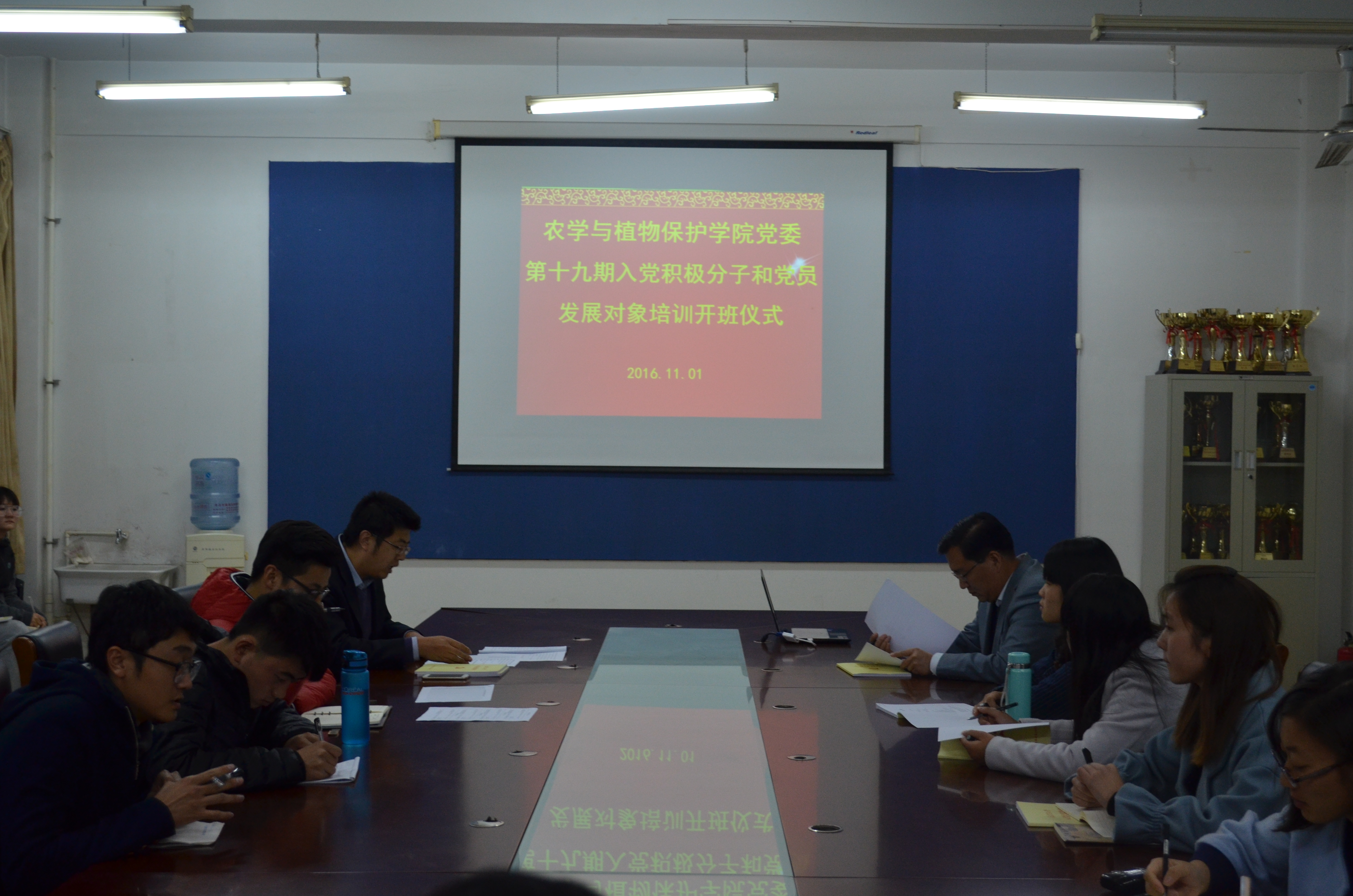 11月1日,农学与植保学院于N206举行党委第十九期积极分子和党员发展对象培训开班仪式。院党委副书记、副院长李军,院团委书记姜涛出席。