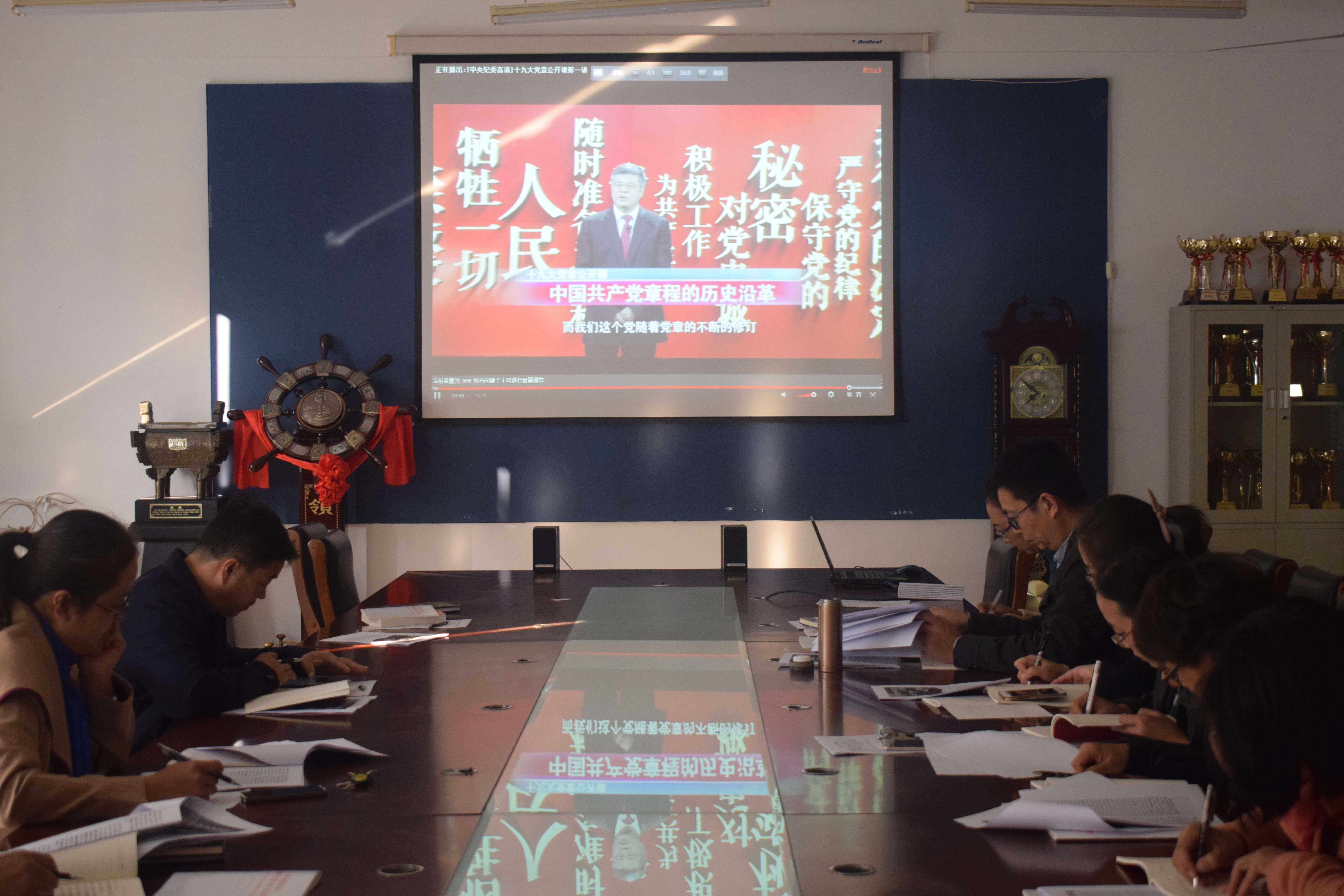 会议开始,全体党员集体观看学习了《十九大党章公开课》,学习党的十九大章程,党员们认真观看视频,并进行了心得体会分享。第一支部书记师长海为各位党员分发了《中国共产党章程--修改对比一览表》,帮助大家更好更快的进行学习。