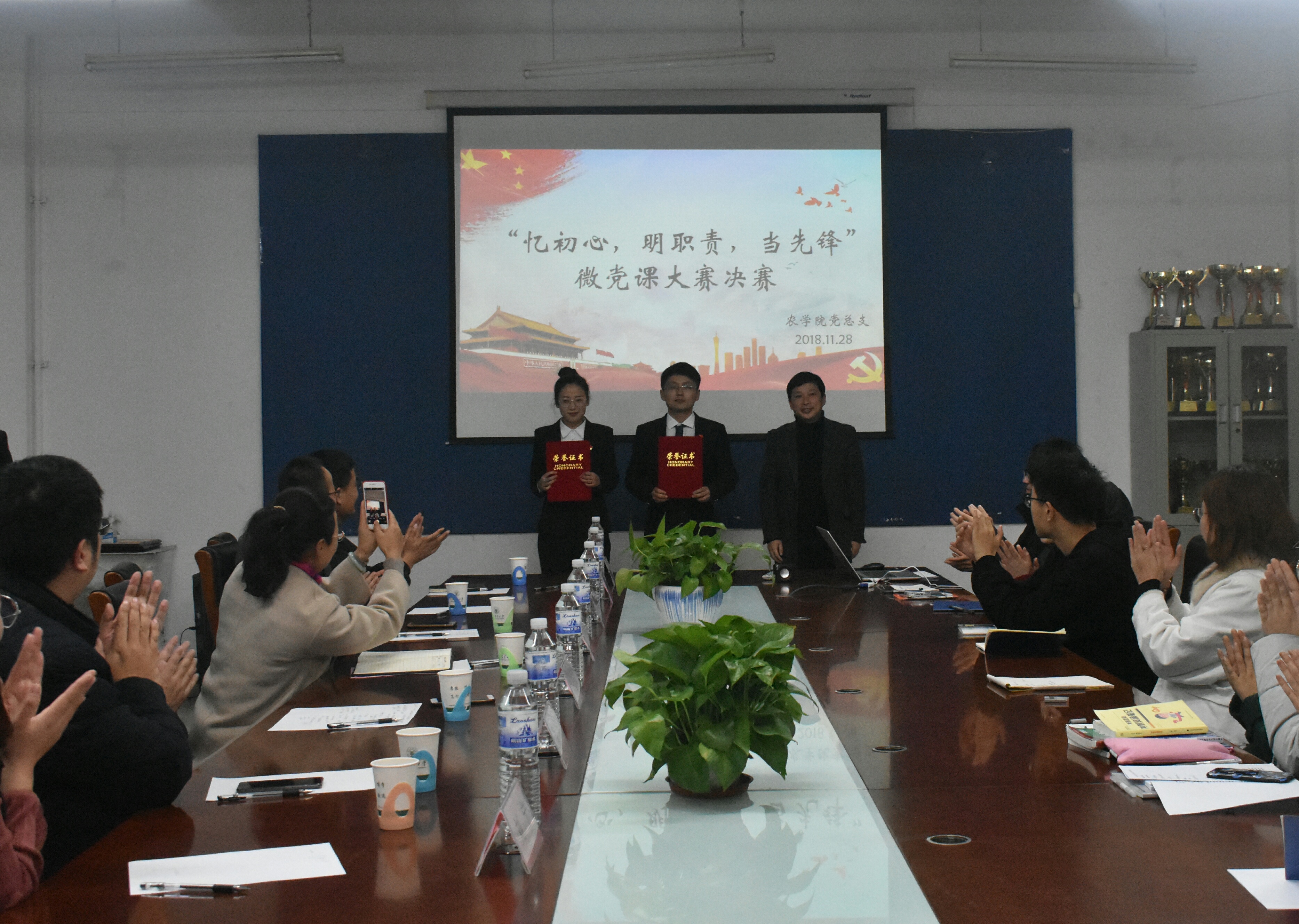 比赛伊始,在座人员一同观看了宣传片,了解了beat365正版唯一官方网站党总支自成立以来在党建工作方面取得的成绩以及进入决赛的6名选手的基本情况。随后,6名选手分别以“农科学子的责任与担当”、“青马工程,伴梦同行”、“奋斗所到处,青春恰自来”、“入党誓词的前世今生”、“学时代先锋,做合格党员”、“改革开放40年,中国做对了什么”为主题进行微党课的精彩讲演,多层次的分析、宽角度的见解令现场掌声如潮,经久不息。来自beat365正版唯一官方网站第三学生党支部的王红带领全体党员重温入党誓词,面向党旗庄严宣誓,更是将比赛气氛推向一个新的高潮。经过紧张有序的角逐,最终来自beat365正版唯一官方网站第三学生党支部的单良凭借独特新颖的视角和声情并茂的叙述摘得桂冠,获得一等奖。