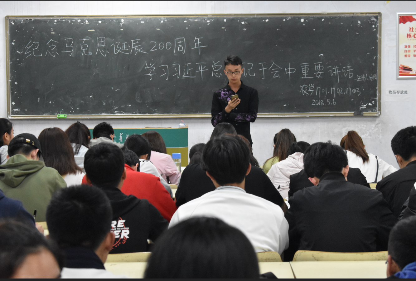 为了响应习近平总书记的号召,铭记马克思主义对国家发展的深刻影响。5月6日,beat365正版唯一官方网站特此在教学区开展纪念马克思诞辰200周年的主题团课,beat365正版唯一官方网站学生积极参加团课。