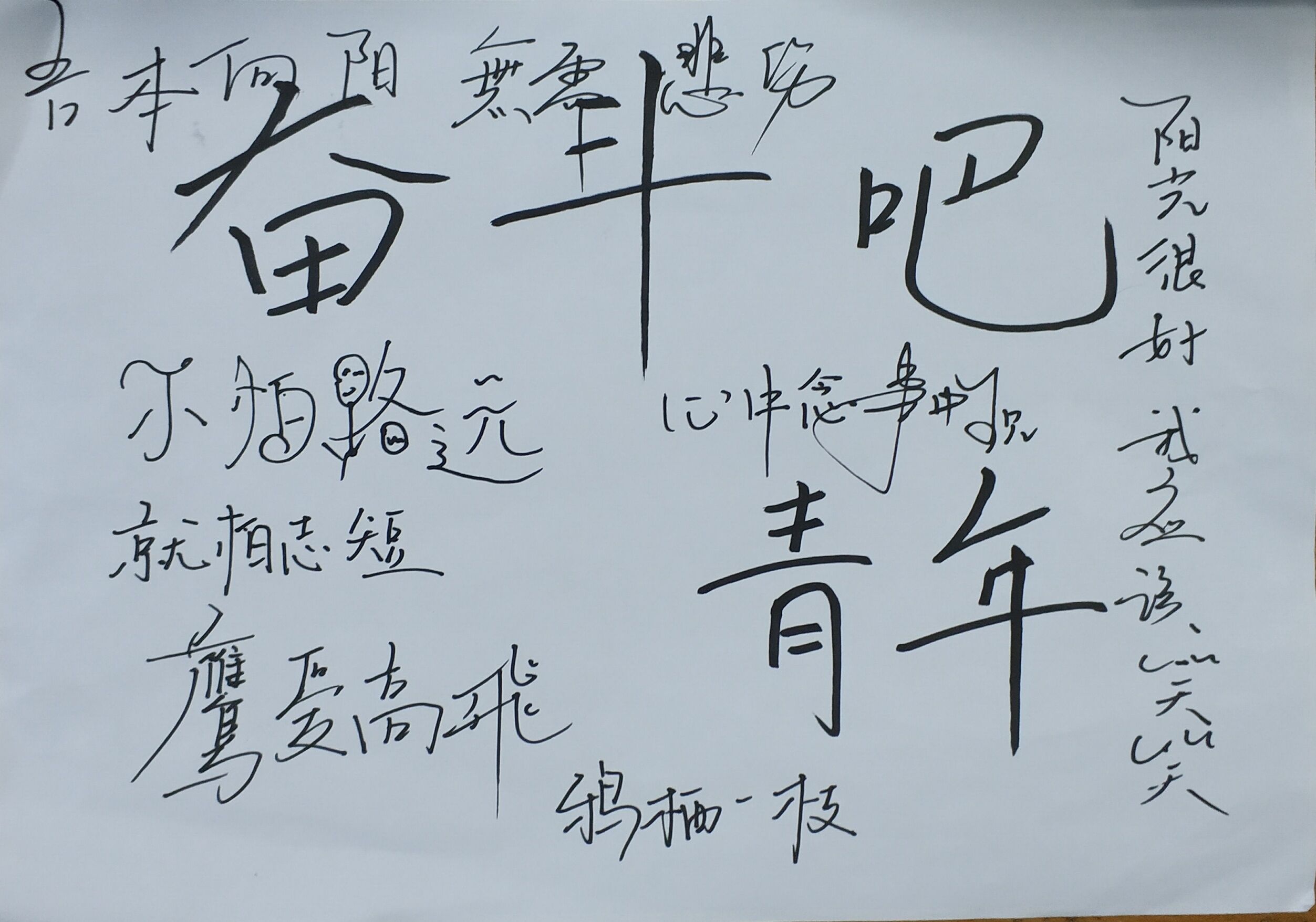 社会实践部干事向全院参与学生积极介绍本次志愿活动。随后,将写有“奋斗吧,青年”的小宣传板板交给任意一位同学,请他在宣传板后写下励志寄语并将纸板传递给另一位同学,不断传递。活动中传递的不仅仅是一张薄薄的纸板,更是青年们一颗颗炙热的进取心,是他们对未来社会的憧憬和为祖国奉献力量的责任。
