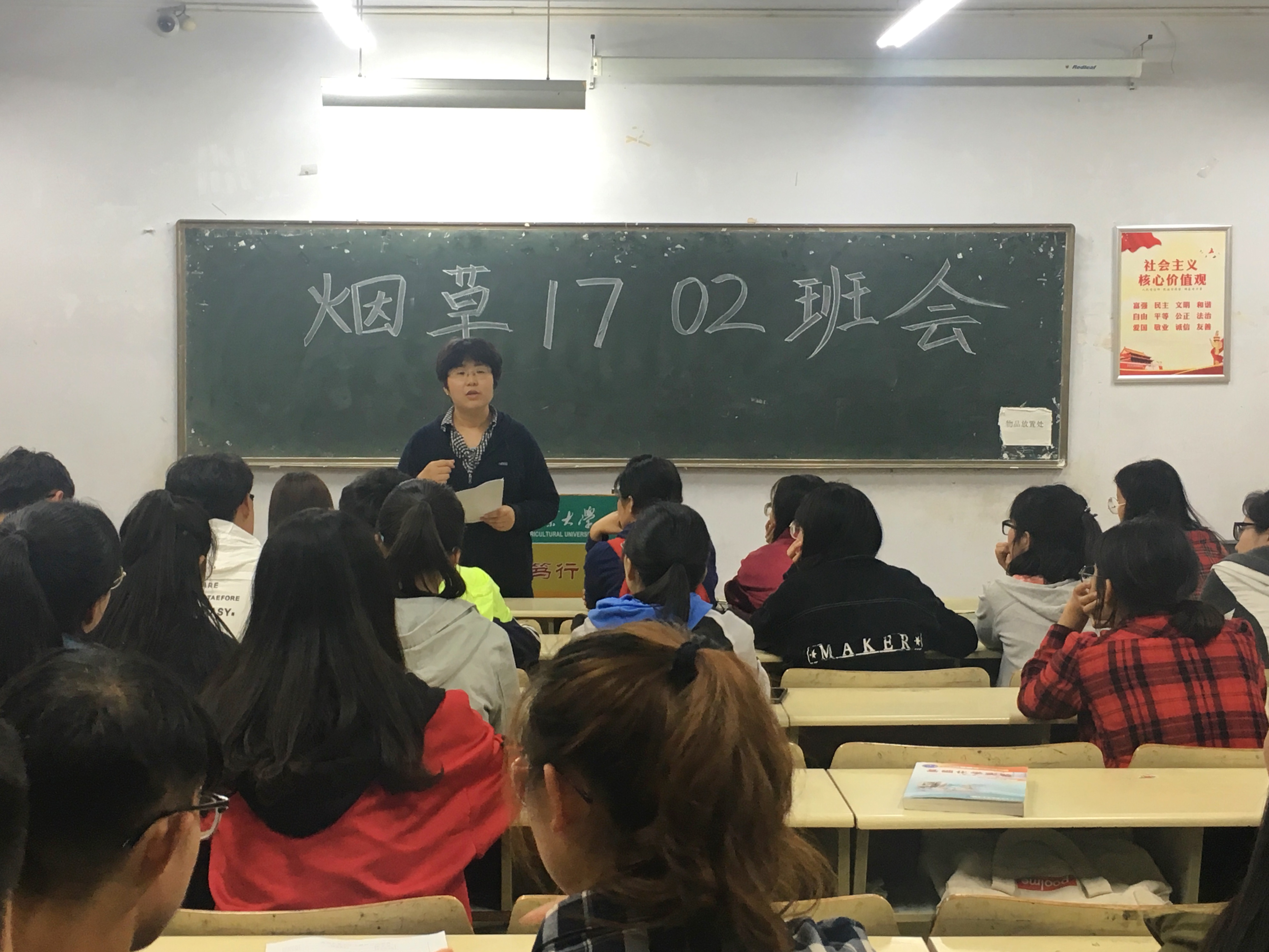 为加强宿舍安全管理,确保宿舍安全稳定,提高同学们的自我防范意识及安全意识,5月6日,烟草1702班班主任郭新梅于教学区给班级全体同学召开了“宿舍安全和安全教育与管理”主题班会。