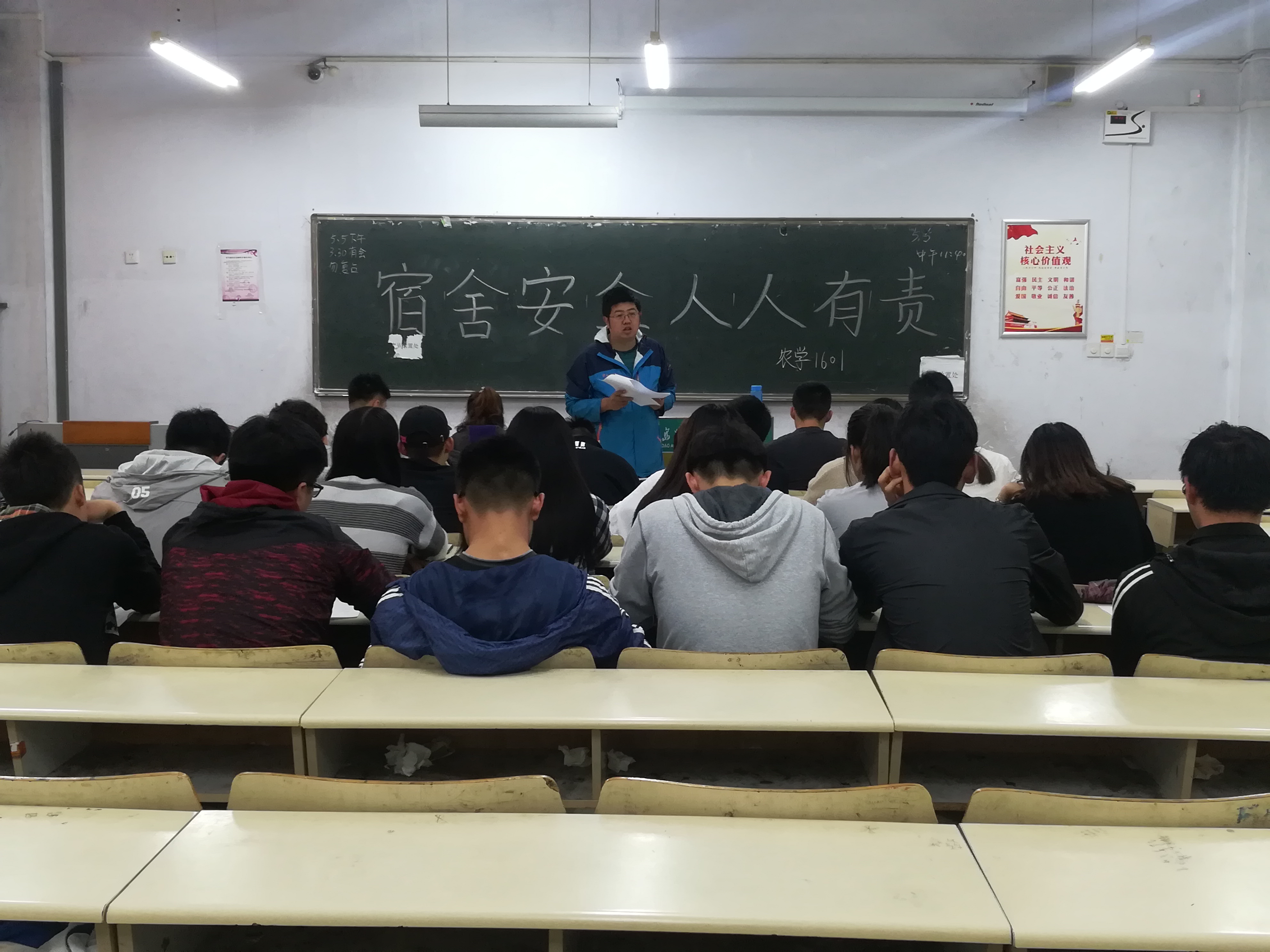5月5日,农学1601班在教学区A区召开安全部署会议,班主任姜涛主持会议,农学1601班全体同学参与会议。