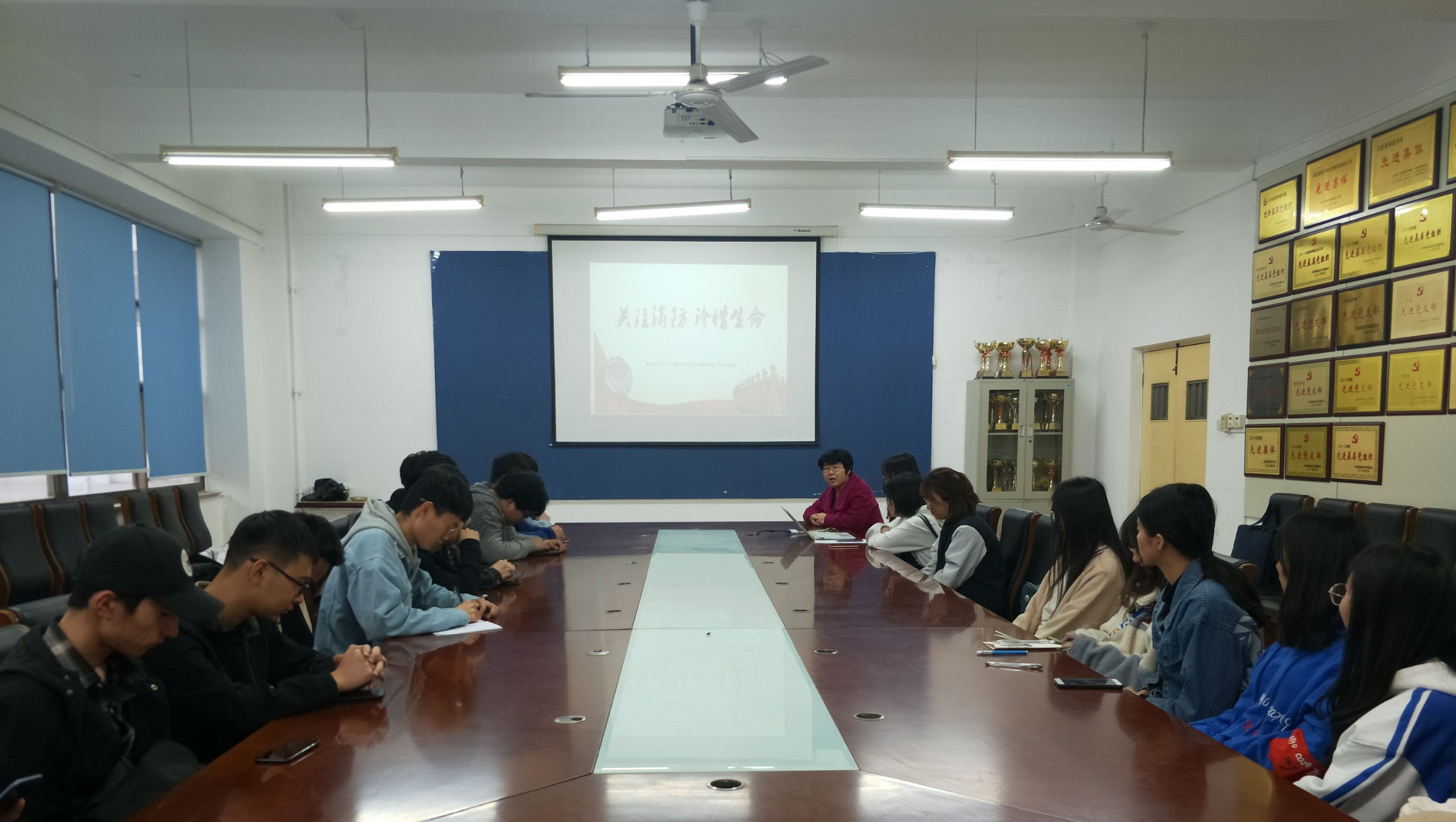 为加强同学们的消防安全意识,提高同学们的自护自救能力,4月16日,beat365正版唯一官方网站烟草1702班于生物楼N区举行消防安全班会,班级同学积极参加。班主任郭新梅主持了本次会议。
