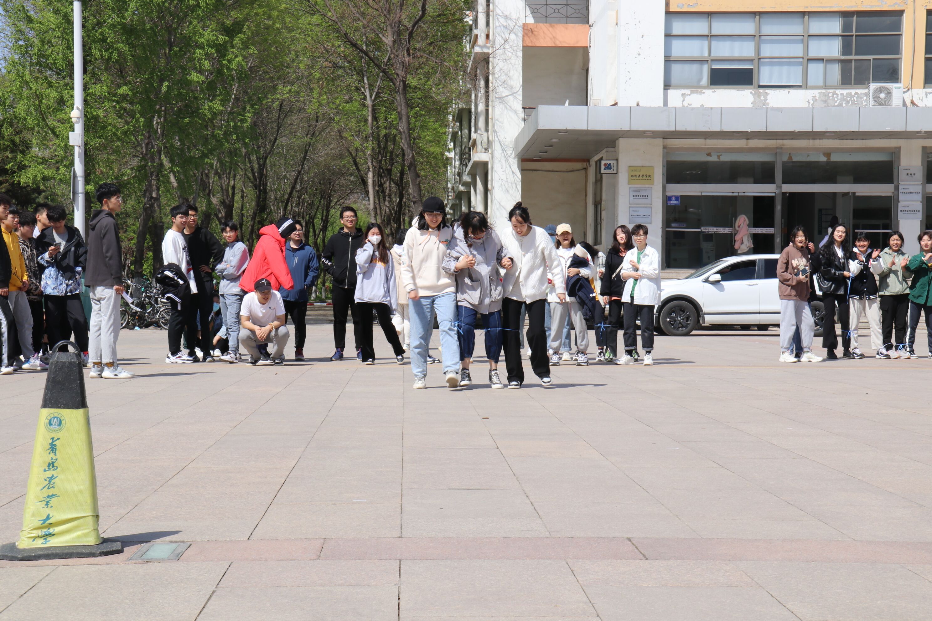 比赛还未正式开始,同学们在虹子广场上做着赛前热身,摩拳擦掌,跃跃欲试,欢声笑语一片。裁判的一声哨音适时响起,趣味运动会正式开始。拔河比赛作为首发项目,竞争尤为激烈,场下观众高声呐喊,为自己的队伍加油打气,现场气氛十分热烈。随后的绑腿跑项目,趣味横生,既锻炼了参赛选手的平衡力,又考验了他们的赛跑能力。比赛中,同学们积极投入,精神抖擞,热情高涨,充分展现出团结进取、蓬勃向上的精神风貌。虹子广场上笑声不断,洋溢着20级学生们的热情。时间飞速流逝,趣味运动会接近尾声,全体参赛班级来到虹子广场前合影留念。