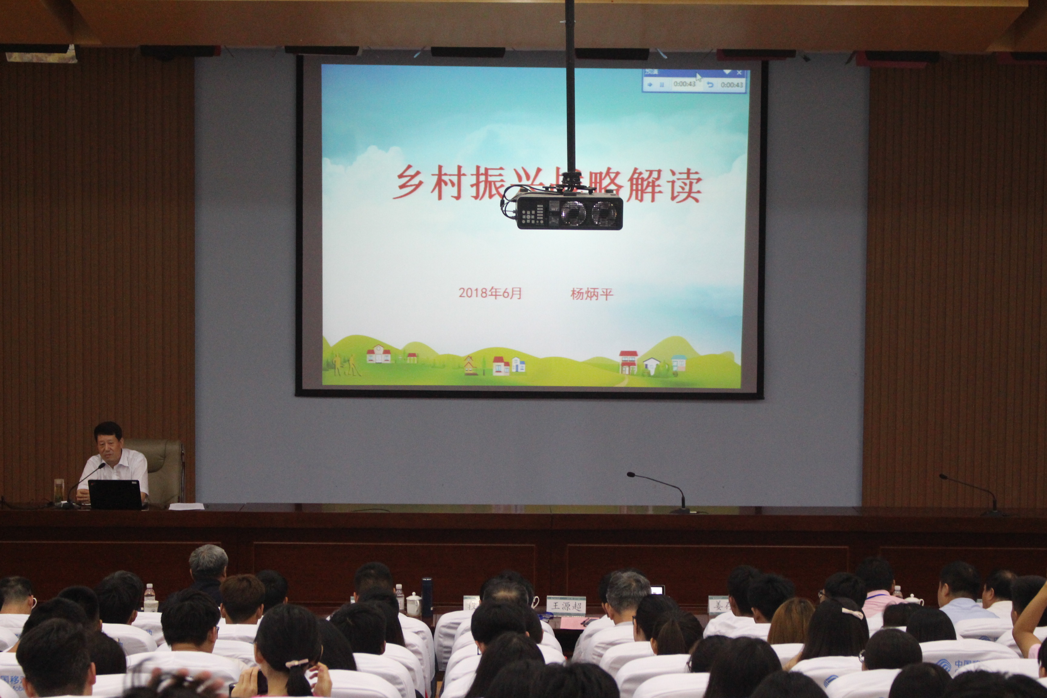 杨炳平首先从宏观层面阐述了乡村振兴战略提出的背景和意义及主要内容,我省实施乡村振兴战略的基础条件、重点工作及政策措施。同时他还强调:我省是农业大省,但还不是农业强省;新农村建设取得了很大进展,但建设任务依然十分繁重;农民生活水平有了很大提高,但农村各类人才十分缺乏。这使在座师生对我省的乡村振兴战略有了明晰的认识,激发了在座每一位学生积极投身于发展农业的责任感和使命感。