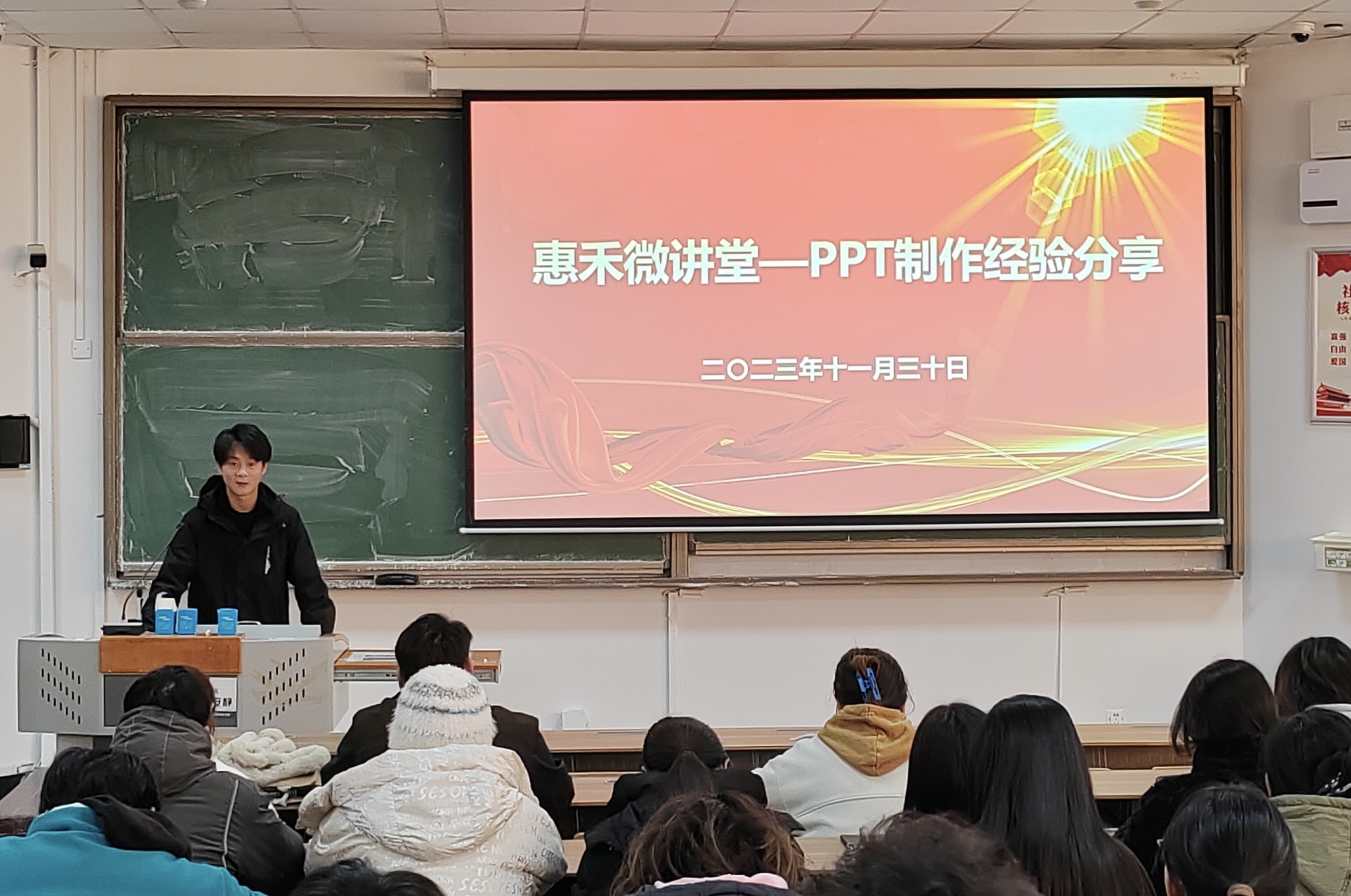 为提高学生干部办公操作能力,11月30日,beat365正版唯一官方网站于教学楼开展惠禾微讲堂,就PPT制作进行培训。本次活动由学生会主席团成员、“知农爱农守初心 强农兴农担使命”PPT制作大赛一等奖获得者陈卓群主讲,学院学生干部参加。
