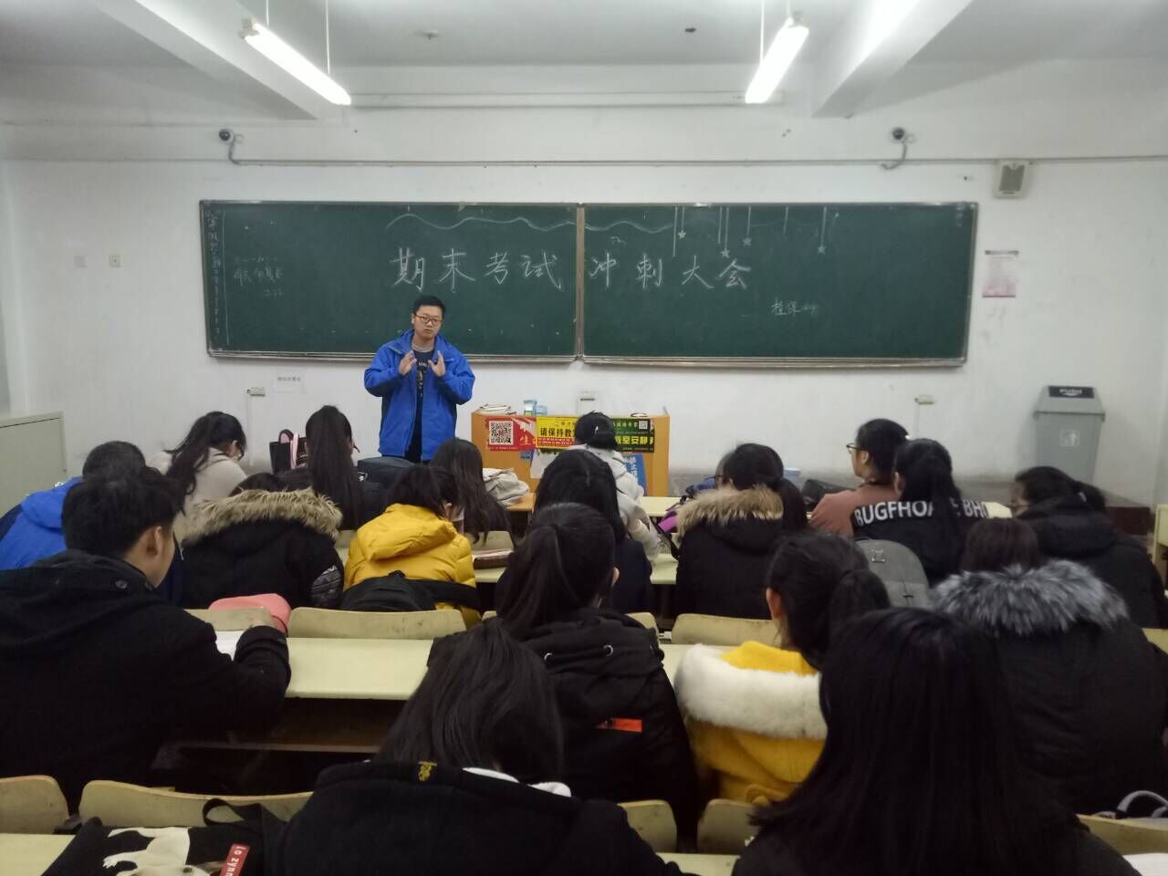 会议开始,徐雪莹首先为大家讲述了自己的学习方法,并为大家讲解了各科目考试的重点题型,同学们认真倾听,仔细记录。随后李方毅通过讲述故事,以及“别人家的孩子”的事例来鼓励同学认真学习,努力做到“有志者,事竟成”。接下来由高年级同学来介绍学习经验,对同学们进行鼓励,只要平时认真学习,就会取得一个好成绩。最后由班长彭得智表示,“放轻松,好好考,回家过个好年。”