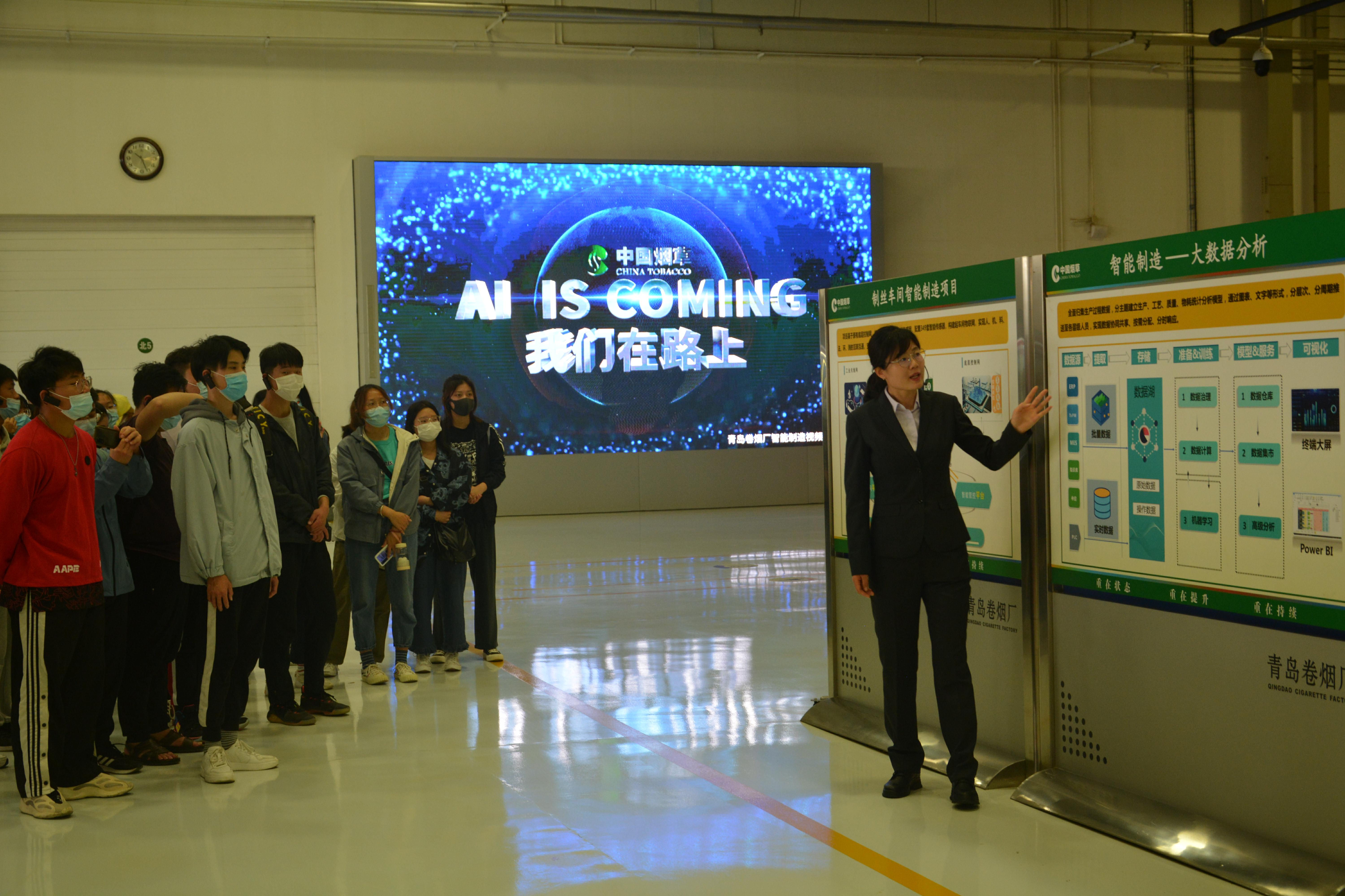 最后,同学们乘车前往青岛卷烟厂,参观了制丝车间和卷包车间,车间里全自动化的生产和全智能化的管理,让同学们对现代烟草生产有了崭新的认识。