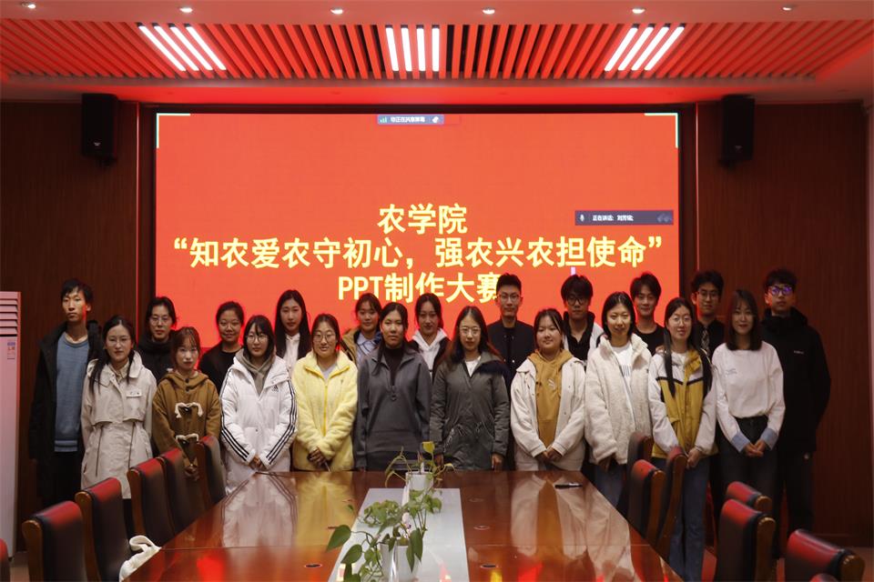 比赛伊始,陈子仪介绍了本次比赛的流程和评分细则。比赛过程中,参赛选手结合自身生活实际,将个人对“知农爱农、强农兴农”的理解融入到PPT制作与汇报中。参赛选手紧扣比赛主题,从农耕文化传承、耕作制度演变和农业生产技术等角度入手,阐述农业发展的历程,讲述杰出校友的奋斗事迹,倡议农科学子以严格的态度、敢担当的精神、坚定的理想信念,厚植爱农情怀,练就兴农本领,肩负起“知农爱农守初心,强农兴农担使命”的重任,充分展现农科学子爱国奉献、蓬勃向上的精神风貌。比赛结束后,到场人员进行合照留念。