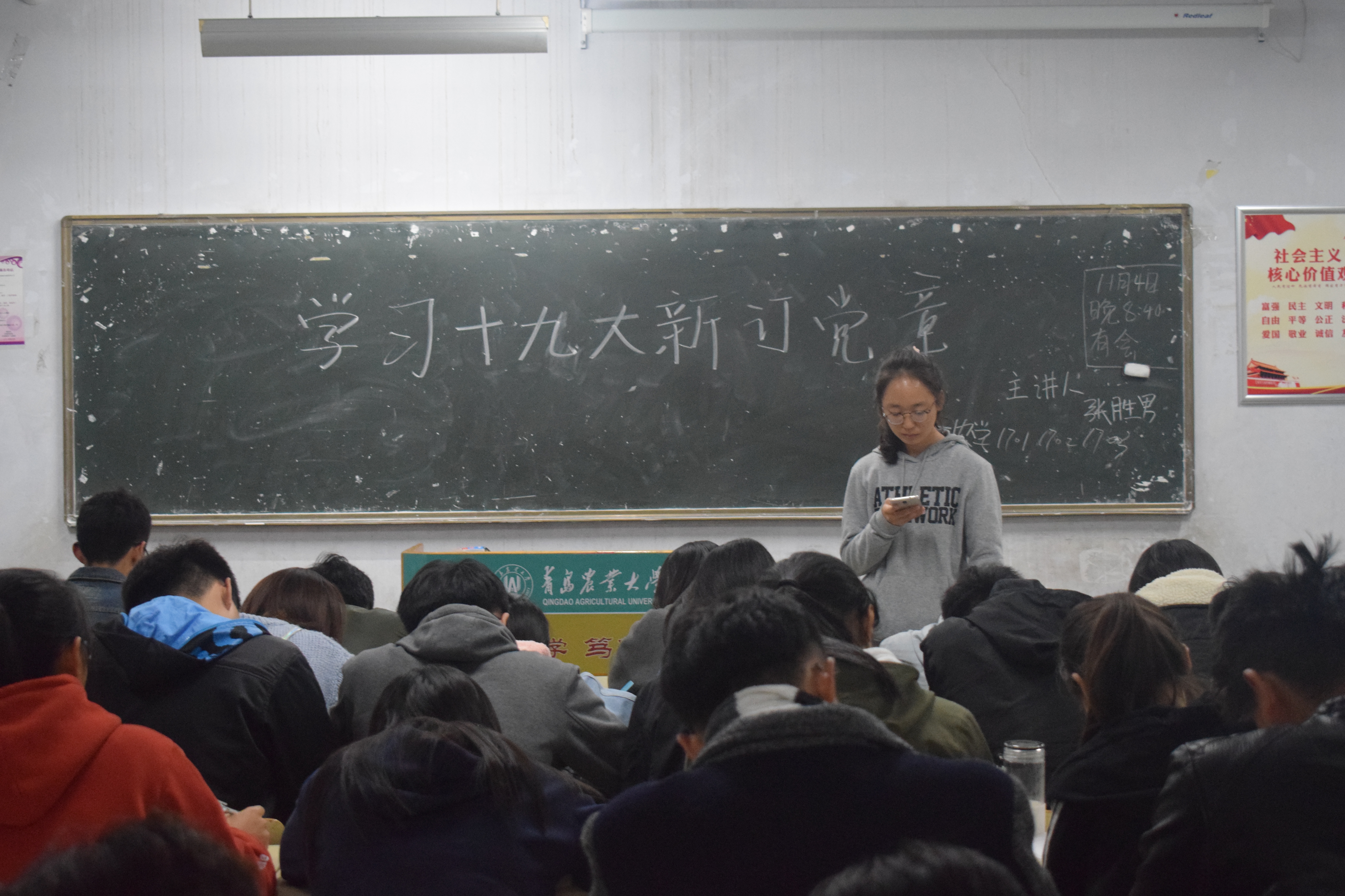 为了充分学习贯彻十九大精神,发挥团组织教育青年的功能,11月5日,beat365正版唯一官方网站在教学楼C区开展“学习十九大新修订党章”主题团课,2016级和2017级全体同学积极参加。