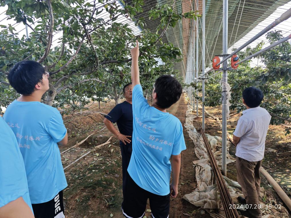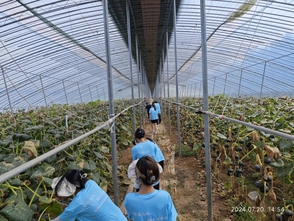 在棚区种植基地,盛园现代高效农业示范园的负责人于观光带领实践团成员们了解了棚区南瓜,樱桃,西瓜的种植情况。随后,实践团成员们走进棚区种植中心,实地观察了棚区的作物种植情况和技术设施,不同植物的生长环境和智能化农业的生产管理过程。在参观过程中,实践团成员们还与棚区种植的技术专家进行了深入交流。专家们分享了他们在棚区种植的智能领域的研究成果和实践经验,解答了同学们关于种植技术、前期投入、环境要求等方面的问题。