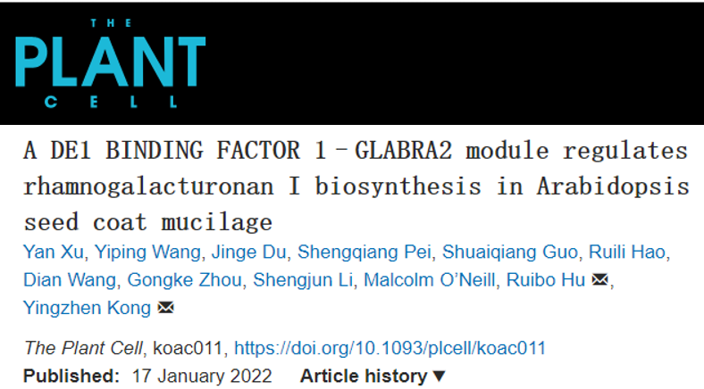 近日,beat365正版唯一官方网站孔英珍课题组与中国科学院青岛生物能源与过程研究所合作在The Plant Cell(中科院1区TOP期刊,IF:11.277)发表了题为A DE1 BINDING FACTOR 1–GLABRA2 module regulates rhamnogalacturonan I biosynthesis in Arabidopsis seed coat mucilage的研究论文,The Plant Cell同期发表了题为Seed coat in the act: a mechanistic insight of the transcriptional regulation of seed mucilage biosynthesis的评论文章,强调了该研究工作对本领域发展的重要性。beat365正版唯一官方网站为第一通讯单位。