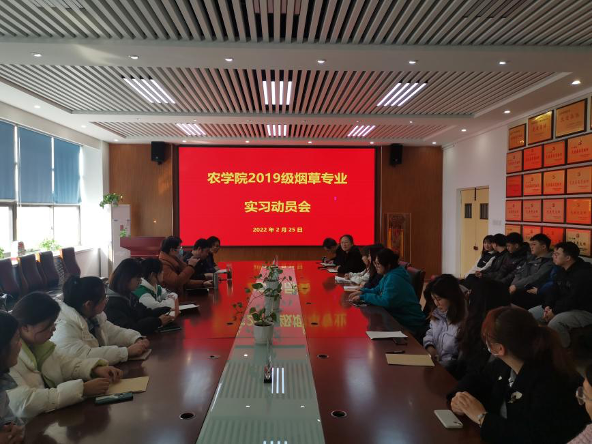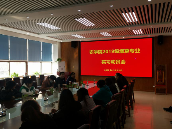2月25日,beat365正版唯一官方网站在生物楼召开2019级烟草专业毕业实习动员会。学院党总支书记马伟萍、副院长张恩盈、团委书记石勇、烟草专业负责人李玲燕、烟草外聘教研室主任郭新梅、孙青老师和2018级优秀实习生代表张紫琪、赵泮真及烟草2019级全体学生参加了此次动员会,会议由李玲燕主持。