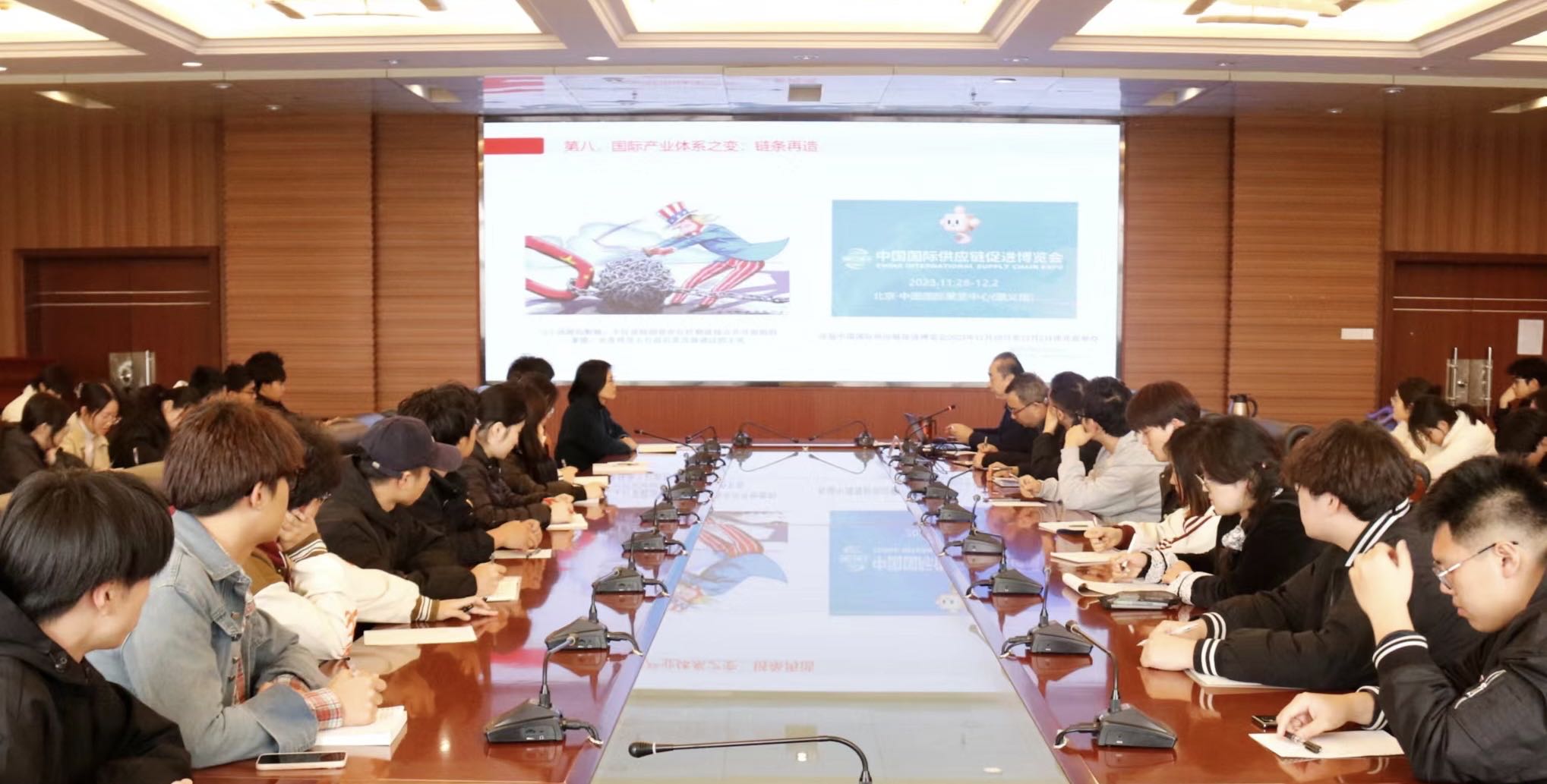 刘新民以国家战略发展及大学生使命担当为切入点,从“纷繁复杂的国际局势”、“信心足、底气硬的中国发展”、“高质量发展的beat365正版唯一官方网站”、“做有理想、敢担当、能吃苦、肯奋斗的新时代好青年”四个方面展开讲授。刘新民阐述了在百年未有之大变局的背景下,围绕国际国内和学校发展大势,回顾“守正创新的2023年”,展望“继往开来的2024年”。刘新民讲述学校近期的发展成果,点明学校在高质量党建工作建设、人才体系培养、校友交流平台搭建等方面所做出的努力,提出学校今年发展的主要预期目标,指出学校将重点在学科组织优化、高水平教学团队培养、对外交流融合等方面争取获得突破性进展。