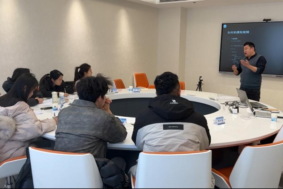 实践期间,团队全程参与企业组织的电商运营专题培训。1月19日8时30分,培训正式启动,8名成员完成签到并加入培训群组。首场培训由电商部直播运营负责人牟智刚主讲,围绕抖音电商生态展开系统解析,重点探讨平台特性、流量运营机制、自然流与投流技巧等关键维度,通过实际案例阐明内容创意与数据监测在电商运营中的重要作用。