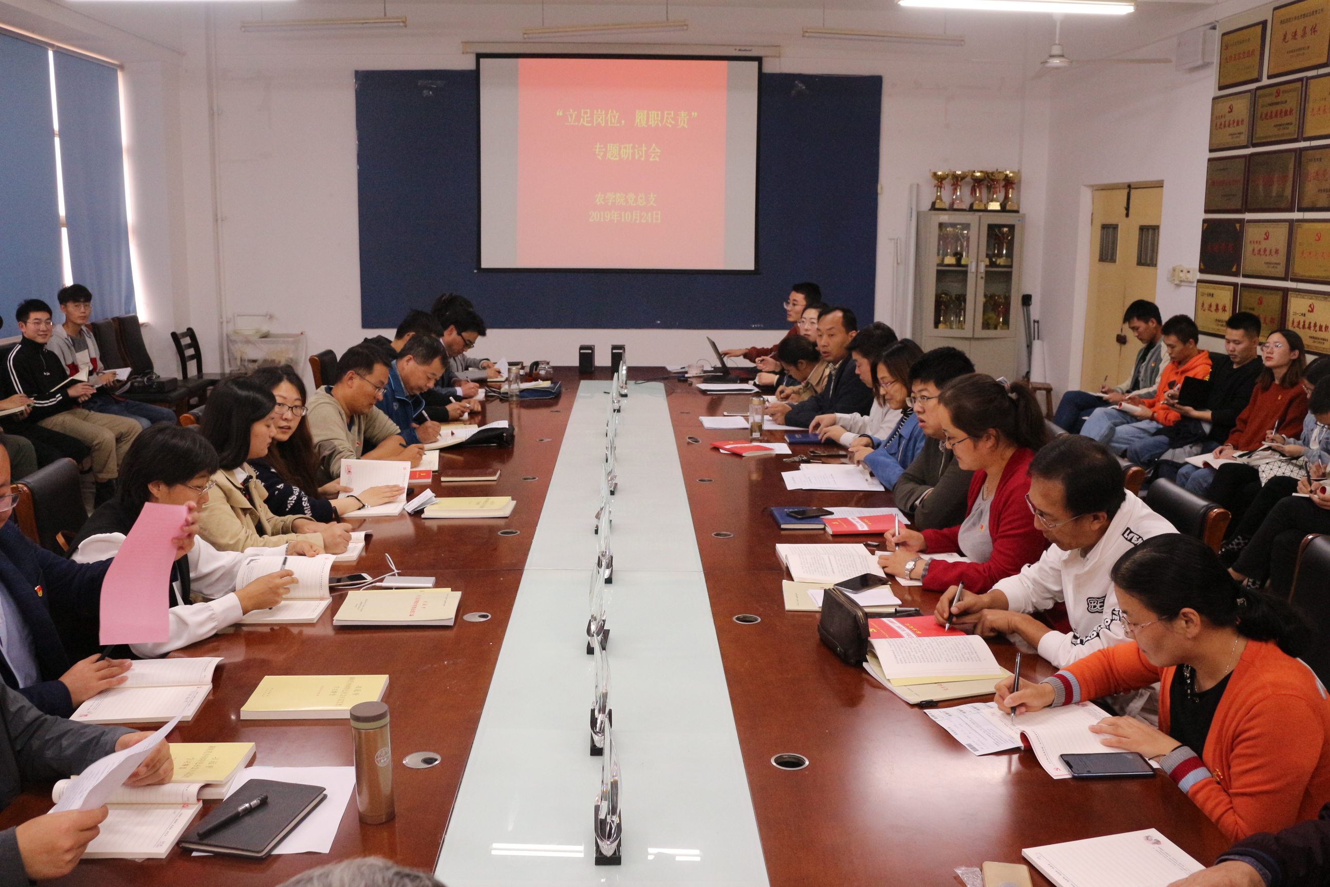 按照《beat365正版唯一官方网站党总支关于开展“不忘初心、牢记使命”主题教育的实施方案》总体安排,10月24日,beat365正版唯一官方网站党总支于生物楼召开“立足岗位、履职尽责”专题研讨会。学院全体教工党员、2019年度下半年党员发展对象和学生党员参加。会议由学院党总支副书记马伟萍主持。