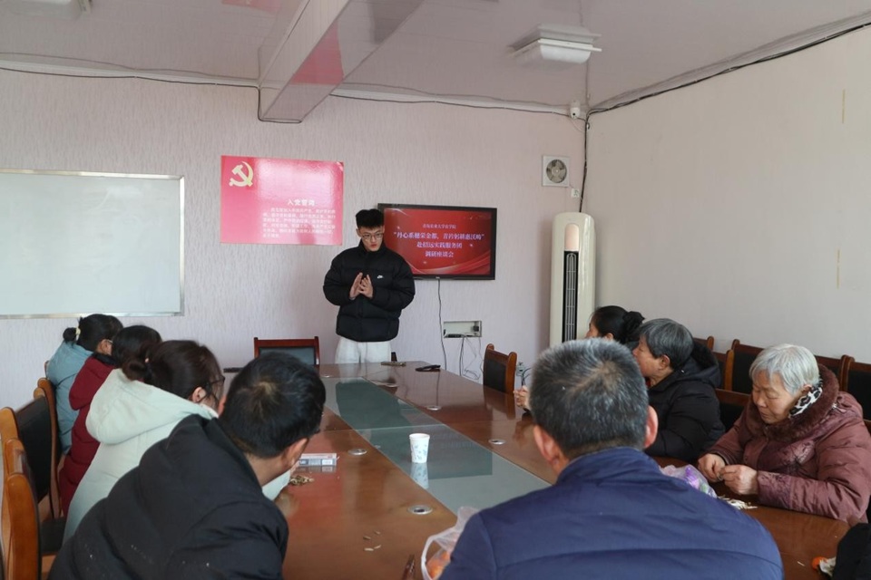 随后,1月23日、24日两天,实践团分赴温泉街道相关村庄开展入户调研,与农户开展座谈会,进行面对面交流,收集其在种植技术、销售渠道、劳动力短缺等方面的急难愁盼问题20余条。同时,实践团现场开展农业科技宣讲会,通过案例展示等方式,推广节水灌溉、无人机植保等4项实用技术,提升农户种植信心与管理水平。在座谈交流中,实践团介绍了多个豆类、花生、小麦优良品种。“还是得让孩子们多多学习,用科技让百姓们过上更好的生活”,一位农户在交流过程中的感慨道。