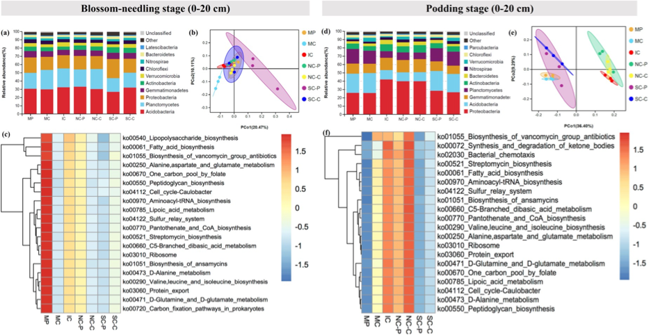图1 不同种植模式对花针期和结荚期花生根际土壤细菌多样性的影响