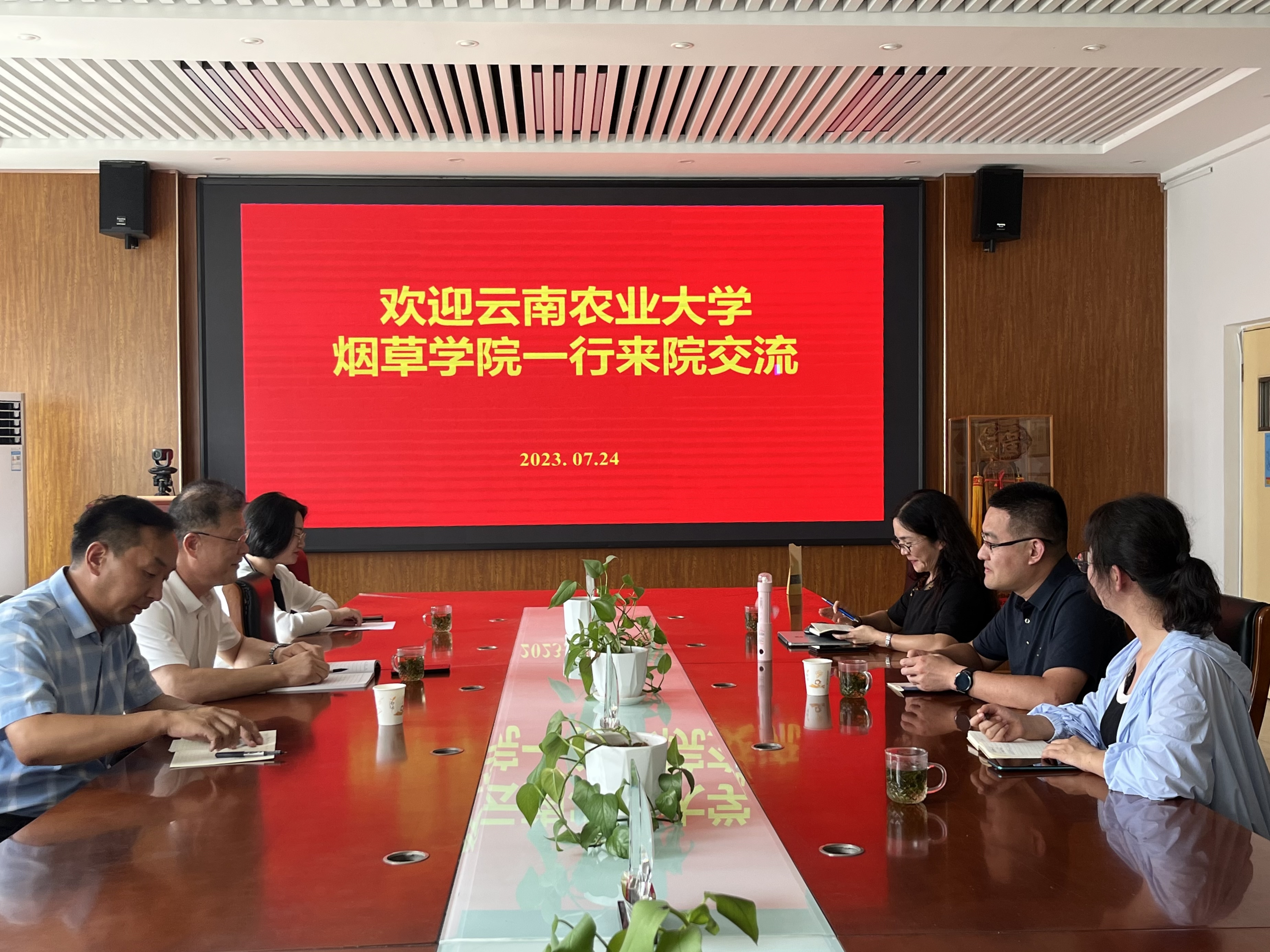 7月24日,云南农业大学烟草学院刘雅婷院长一行到访beat365正版唯一官方网站,学院邀请中国农业科学院烟草研究所副所长戴培刚、山东农业大学烟草系主任杨龙等专家参加交流。副院长赵长星主持交流会。