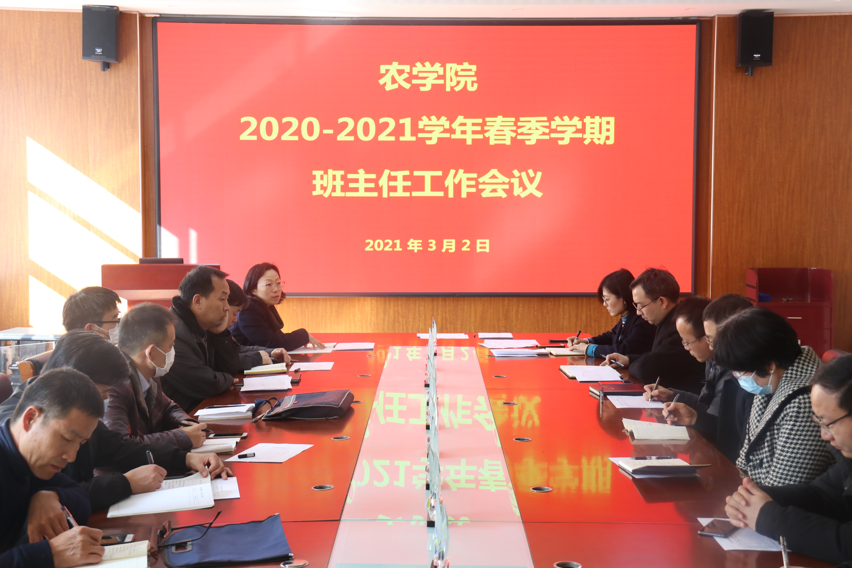 会议伊始,团委书记石勇总结了上一年学院整体的就业情况,梳理了新学期就业工作的重点事项,通报了学院考研初试成绩。随后,马伟萍从校园安全、意识形态、心理健康教育、疫情防控、学风建设、宿舍管理等方面对上学期工作进行了总结,并对新学期工作进行了部署。她强调,疫情防控工作仍然不能放松,要督促提醒学生每日上报,严格请销假制度,在宿舍做好通风消毒,不造谣、不信谣、不传谣。同时,她指出,春季是心理危机高发期,各位班主任要高度重视学生的心理健康,时刻关注学生的情绪起伏,针对不同学生的心理状况进行有效疏导,对心理排查存在风险的学生进行“一对一”谈话并做好谈话记录,做到预防为先,及时化解危机。最后,张玉梅作总结发言。她充分肯定了班主任在学生工作中做出的贡献,对每位班主任老师的倾心付出表示衷心感谢。她强调,各位班主任老师要将安全稳定工作放在第一位,安全问题是红线,要本着为学生负责、为学院负责的态度,做实做细各项班级工作,推动学院学生工作高质量发展。