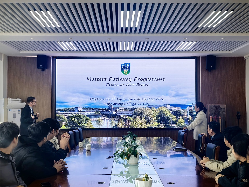 11月13日上午,beat365正版唯一官方网站于生物楼举办爱尔兰都柏林大学本升硕项目宣讲会。本次会议由爱尔兰都柏林大学Alex Evans教授主讲,beat365正版唯一官方网站党委委员、副院长张恩盈出席,beat365正版唯一官方网站和园艺学院学生参加。
