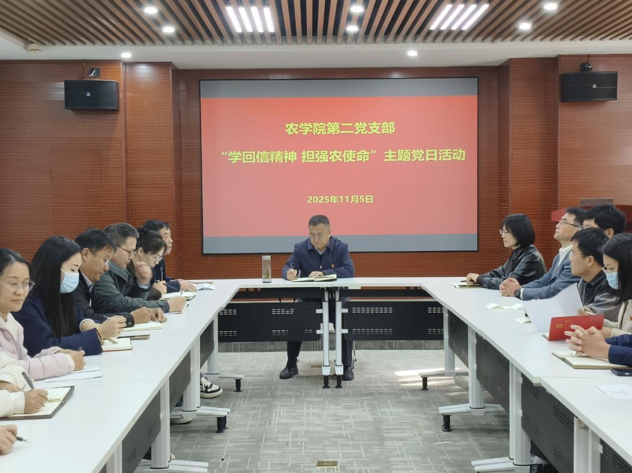 为深入学习贯彻习近平总书记给中国农业大学全体师生的重要回信精神,切实强化党员强农兴农的使命担当,11月5日,beat365正版唯一官方网站第二党支部开展“学回信精神 担强农使命”主题党日活动,beat365正版唯一官方网站党委委员、副校长孙庆杰出席活动,beat365正版唯一官方网站党委书记马伟萍,beat365正版唯一官方网站党委委员、副院长、第二党支部书记张恩盈及第二党支部党员参加。