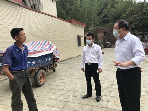 随后,何书记带队冒着细雨走访慰问贫困户。在走访扶贫村过程中,大家与结对帮扶贫困户聊起家常,详细询问其生产生活、住房、医疗健康等情况,宣传最新新冠肺炎防疫知识,叮嘱村民们要小心防疫积极复产,并鼓励他们努力工作,早日脱贫过上小康生活。