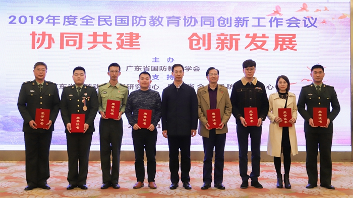 12月27日,2019年度全民国防教育协同创新工作会议在惠州举行,对全省国防教育工作先进集体和个人进行表彰,公布了全省第一批国防教育学科专项省级教研小组,第二届广东国防教育学会专家委员会、咨询委员会专家组成员名单。会议期间,同时举行了全省军事课教学比赛决赛。