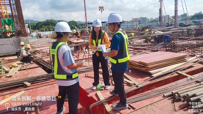 教师们在“拆解一栋楼”项目实践学习期间,还结合自身专业特长积极服务工程项目建设。其中包括为项目部新入职的员工进行专业软件的培训,协助测量主管完成测量放线工作,协助项目生产经理、施工主管对工程进行质量检查,配合技术部门完成相关方案的编制等工作。
