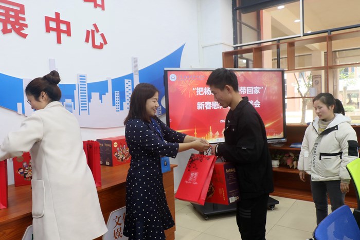 最后,许从进书记和何梦如副处长为学生代表们发放新春慰问品。此次座谈会,不仅让同学们感受到学院的暖心关怀,也更好地引导同学们树立乐观向上的良好心态,激发感恩情怀和励志进取精神。