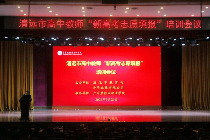 2021年3月26日下午,清远各个县市区招生办负责人、高中校领导和各学校高三班主任共300余人齐聚九游体育官网,开展了一场内容翔实、“干货”满满的“新高考志愿填报”培训活动。清远市教育局党组成员、副局长高常立,清远市招生考试委员会办公室主任刘能剑、副主任杨玉华和刘纯丽,武汉升学在线科技有限公司升学研究院总编程亚,九游体育官网院长刘惠坚、党委书记许从进出席活动,活动由学院领导植秀聪主持。本次活动由清远市教育局和升学在线有限公司主办、九游体育官网承办,旨在通过培训,使清远市高中教师更好地理解新志愿填报方式,指导考生更加科学合理地填报志愿。