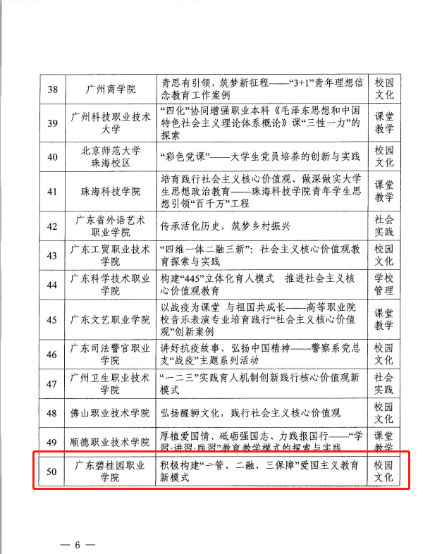 近日,中共广东省委教育工委公布“庆祝建党一百年·践行核心价值观”优秀案例,其中,九游体育官网选送的案例《积极构建“一管、二融、三保障”爱国主义教育新模式》获评二等奖。
