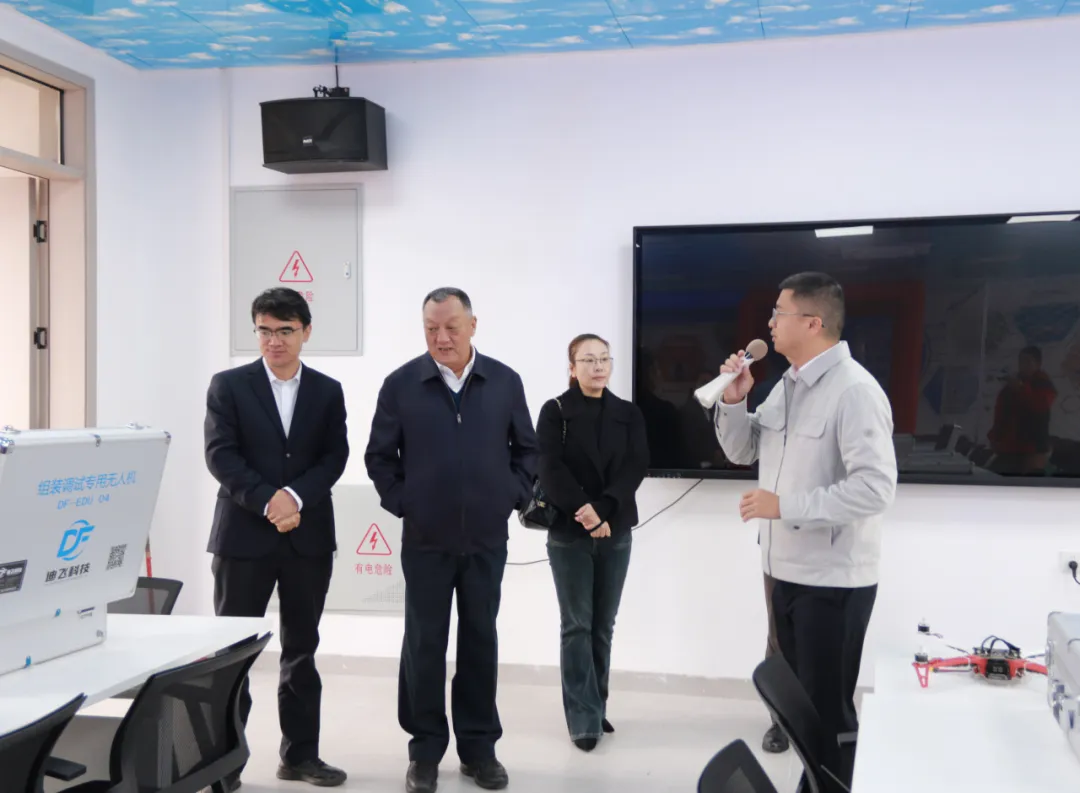 仪式结束后,移步至低空经济产业学院的实训基地进行了实地参观,距离观摩了产业学院的无人机装配实训区、模拟飞行操控区等核心教学场所。