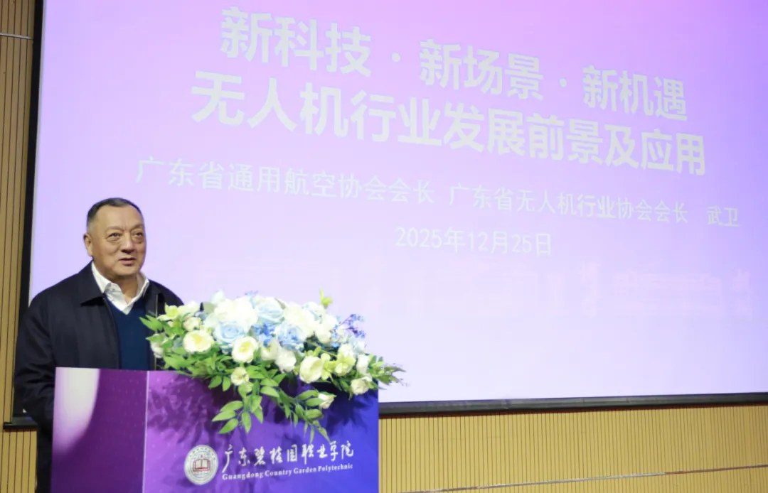 武卫在致辞中指出,当前低空经济作为战略性新兴产业,在广东发展迅速,但面临人才短缺瓶颈。此次低空经济产业学院成立是深化产教融合、精准对接产业需求的关键举措。广东省通用航空协会、广东省无人机行业协会将全力支持产业学院建设,推动校企协同,共同构建课程体系与实践平台,培养高素质技能人才,为广东打造低空经济产业高地持续赋能。