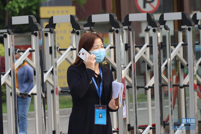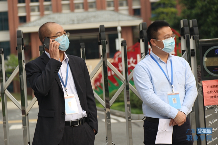 各相关部门工作人员赶赴现场,进行警戒维护,调度车辆和相关防疫物资。将体温异常学生送至清远市疾病防控定点医院后,总务处安排专人对学生所到校门口相关区域进行专业消毒。