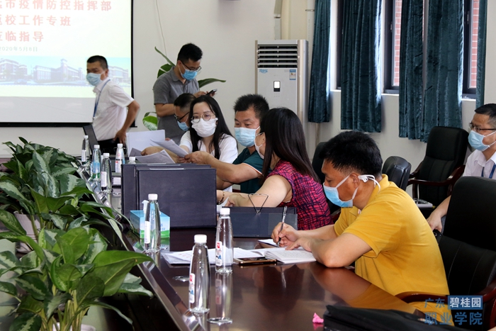5月8日下午,清远市、清城区教育、卫健、疾控、公安、应急、市场监督等多部门组成联合督查验收组,对广东碧桂园学院开学准备情况进行验收检查。学院党委书记许从进、疫情防控办公室、学院办公室、党委办公室、学生工作处、教务科研处、总务处等相关部门负责人陪同。